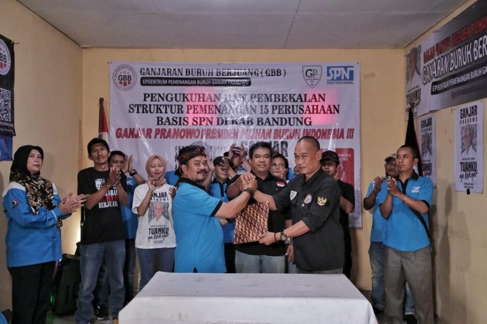 “GBB sudah bersiap-siap sejak 10 bulan lalu, hari ini kita melakukan pengukuhan dan pembekalan dalam rangka konsolidasi perluasan dukungan untuk Pak Ganjar ke 15 struktur basis SPN di Kabupaten Bandung untuk menjangkau 1.500 perusahaan dan 1,8 juta SPN,” ujar Lukman.