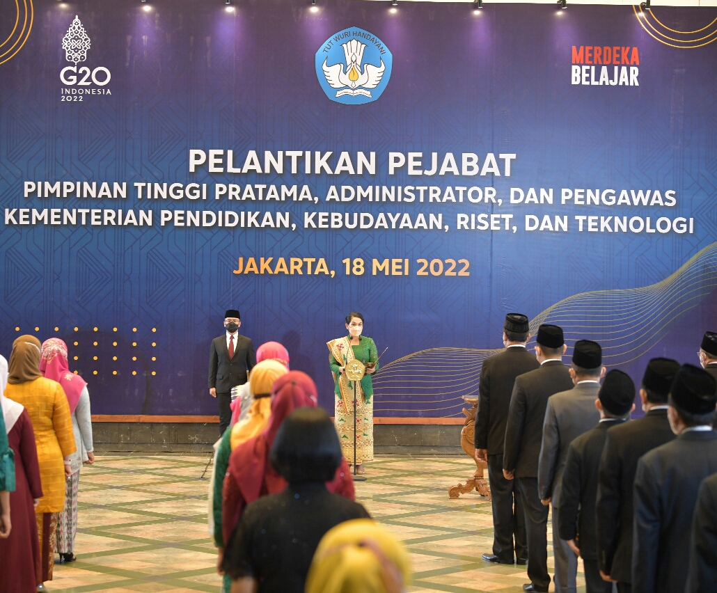 Pejabat yang dilantik, yaitu Staf Ahli Menteri Bidang Hubungan Kelembagaan dan Masyarakat, Muhammad Adlin Sila; serta Widyaprada Ahli Utama pada Direktorat Kepala Sekolah, Pengawas Sekolah, dan Tenaga Kependidikan, Ditjen Guru dan Tenaga Kependidikan (GTK), Subandi.