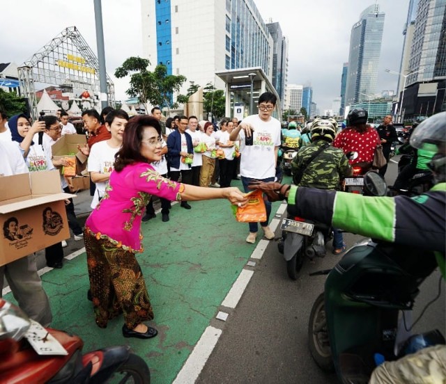 JAKARTA (Suara Karya): Menyemarakkan bulan suci Ramadan, APP Group kembali berkolaborasi dengan Pisang Goreng Madu Bu Nanik membagikan 1.500 takjil kepada masyarakat yang melintas di depan Kantor Sinar Mas Land Thamrin, Jakarta, Rabu (11/3/26).