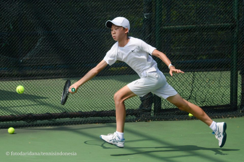Penerima wild card tunggal putra, Rungu Tian dari Tiongkok kembali menang atas unggulan keempat, Komang Bagus Wahyu Purustama, 6-3 6-7(5) 6-3.