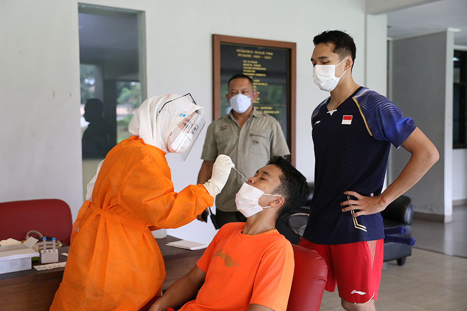 Sebagai bentuk syarat untuk mendapatkan vaksin, hari ini (25/2) mereka diwajibkan menjalani tes usap PCR dan antigen di Pelatnas, Cipayung, Jakarta Timur. Tes diambil di tengah para atlet menjalani latihan pagi.
