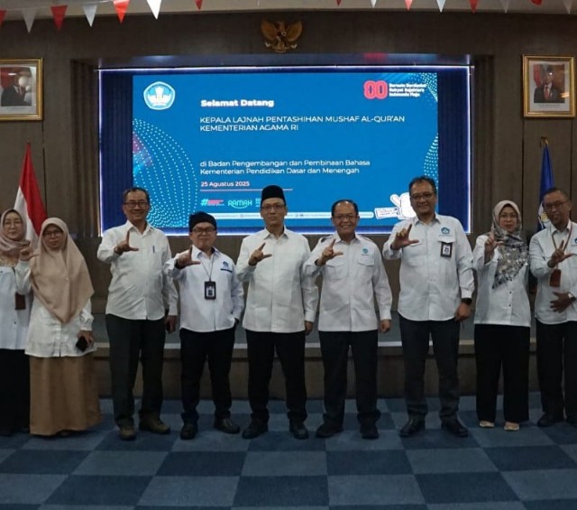 JAKARTA (Suara Karya): Badan Pengembangan dan Pembinaan Bahasa (Badan Bahasa) Kementerian Pendidikan Dasar dan Menengah (Kemdikdasmen) menerima kunjungan Lajnah Pentashihan Mushaf Al-Qur’an (LPMQ) Kementerian Agama di Kantor Badan Bahasa, Jakarta, Senin (25/8/25).