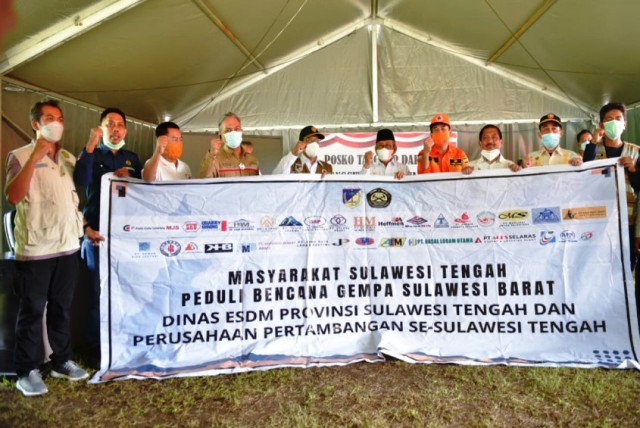 Serah terpisah, Kadis ESDM Prov. Sulteng Drs.Moh.Haris menuturkan bantuan yang diserahkan bersumber dari masyarakat sulteng, bank sulteng, inspektur tambang Kementerian ESDM Sulteng, para pengusaha tambang yang dikoordinir Dinas ESDM Prov. Sulteng.