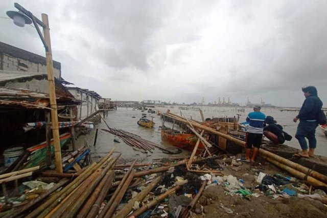 Selain rumah warga di pesisir, gelombang laut akibat cuaca buruk juga menyebabkan kapal para nelayan rusak.