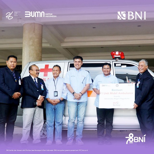 Selain itu, BNI juga memberikan dukungan berupa satu unit Mobil Ambulance APV GL tahun 2023. Dukungan ini diharapkan dapat membantu UNY dalam melayani kebutuhan kesehatan civitas akademika dan masyarakat sekitar.