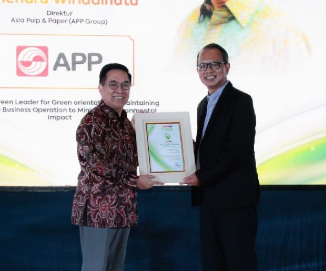 Penghargaan yang diterima APP Group adalah ‘Indonesia Green Leader for Green Orientation in Maintaining Sustainable Business Operation to Minimize Environmental Impact’ untuk kategori Industri Dasar dan Kimia.