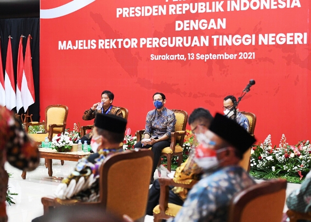 Pernyataan itu disampaikan Presiden Joko Widodo dalam Pertemuan Majelis Rektor Perguruan Tinggi Negeri Indonesia (MRPTNI) di Auditorium Fakultas Kedokteran Universitas Sebelas Maret Surakarta (UNS), Senin (13/9/21).
