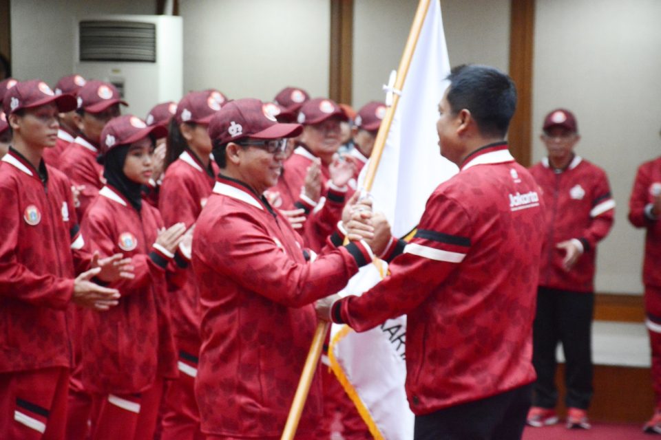 Pelepasan kontingen DKI ditandai penyerahan bendera pataka dari Sekda DKI Jakarta Joko Agus Setyono yang diterima langsung Ketua Kontingen DKI Jakarta Prof. Dr. Abdul Sukur, S.Pd., M.Si.