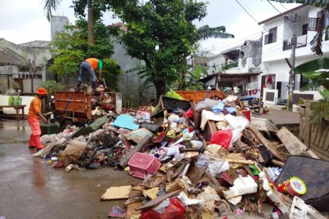 “Petugas membantu warga di pemukiman dalam membersihkan sampah usai banjir agar tak terjadi penumpukan. Kita sebar ke semua wilayah yang mengalami banjir,” katanya.