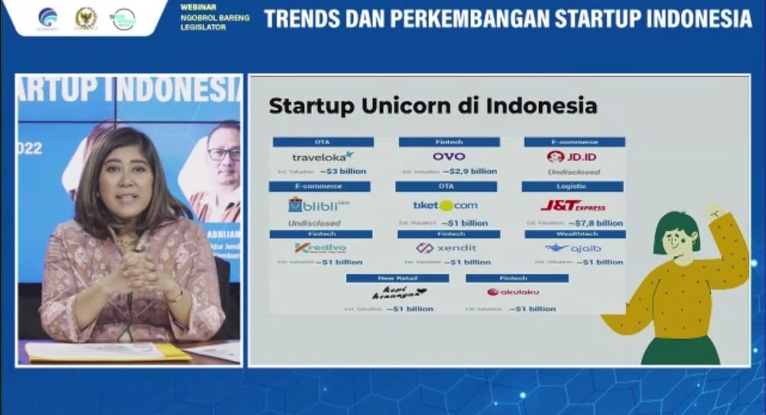 Demikian mengemuka dalam webinar Ngobrol Bareng Legislator bertajuk Trend dan Perkembangan Startup Indonesia, yang diselenggarakan di Jakarta, Rabu (3/8). Webinar via zoom yang diselenggarakan DPR bersama Kementerian Komunikasi dan Informatika (Kominfo) diikuti 250 mahasiswa dari wilayah Sumatera Utara dan sebagian wilayah Jabodetabek menghadirkan Ketua Komisi 1 DPR Meutya Hafid sebagai keynote speaker, Dirjen Aptika Kemenkominfo, Semuel Abrijani Pangerapan dan Software Engineer at HealthBeats, Jabbar Ali Panggabean sebagai narasumber.
