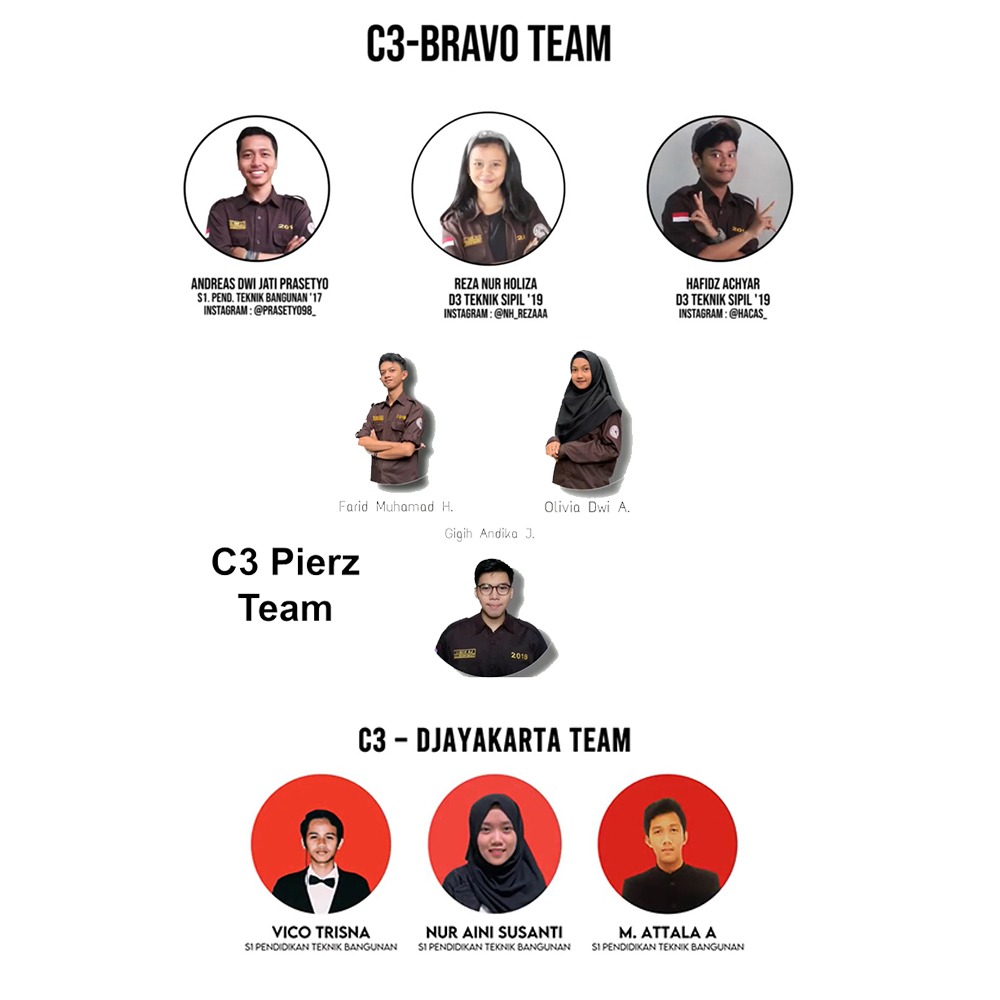 Sedang Civil Construction Club (C3) merupakan klub mahasiswa Teknik Sipil UNJ. Adanya lomba tersebut UNJ langsung mengirimkan 4 tim di kategori Building Modelling, Bridge Modelling, Road Modelling, dan Building Analysis.