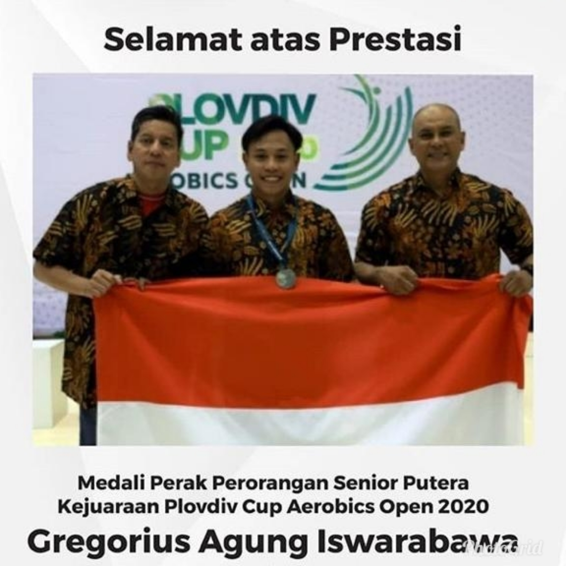 JAKARTA (Suara Karya) : Mengibarkan bendera Merah-Putih dan membawa panji Universitas Negeri Jakarta (UNJ) disuatu event internasional suatu kebanggaan tersendiri bagi atlet. Hal itu dilakukan Gregorius Agung Iswarabawa saat tampil di nomor perorangan senior putera Kejuaraan Plovdiv Cup Aerobics Open 2020 di Bulgaria.
