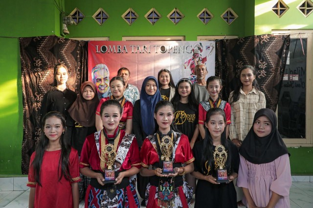 CIREBON (Suara Karya): Sukarelawan Ganjar Sejati menggelar lomba tari topeng di Sanggar Seni Intan Dewi, Desa Danawinangun, Kecamatan Klangenan, Kabupaten Cirebon, Jawa Barat (Jabar), Minggu (16/7/2023).