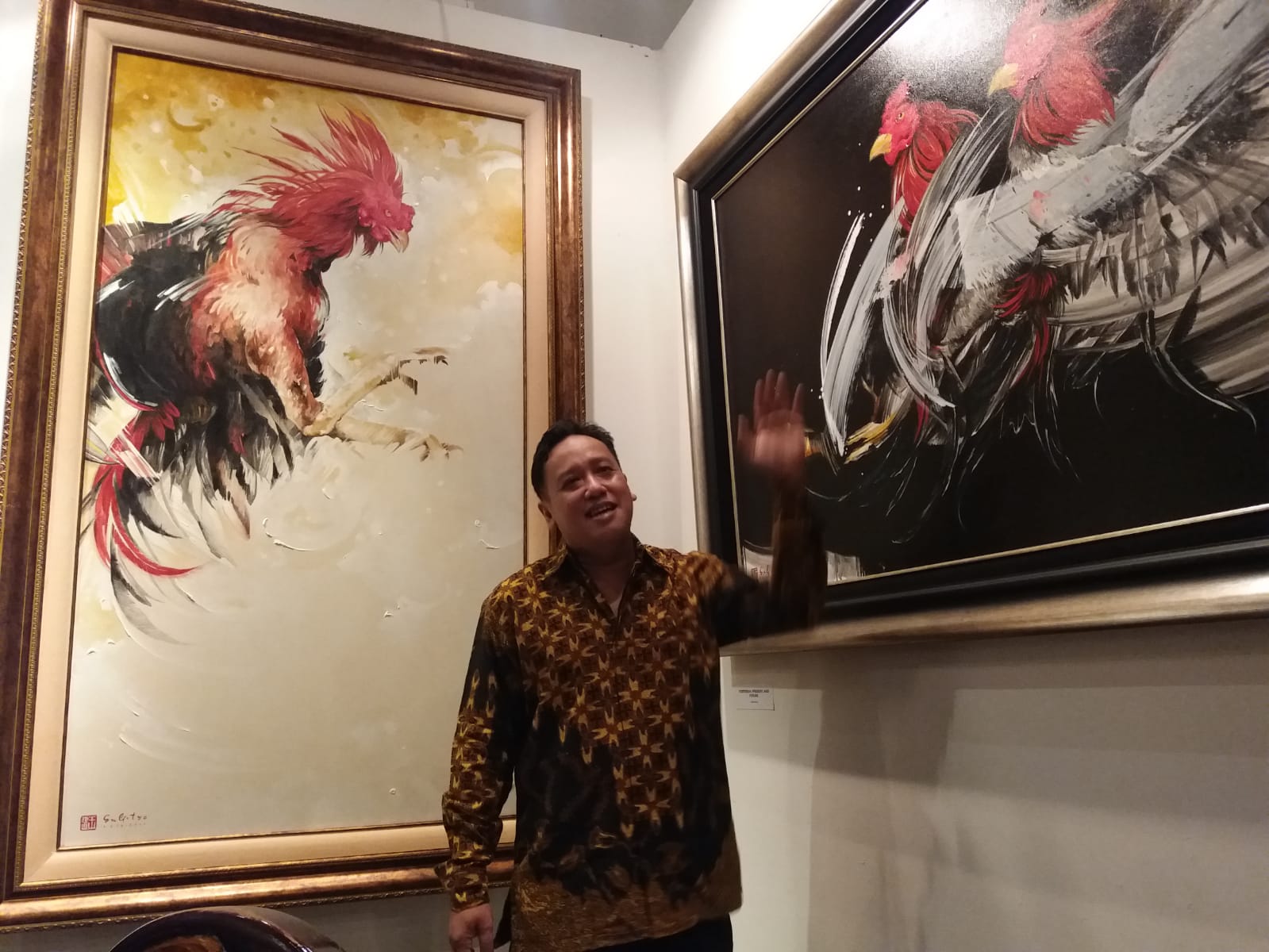Ditambahkan, lukisan yang dipamerkan merupakan hasil karyanya dalam 5 tahun terakhir ini. Lukisan ayam jago dengan latar belakang hitam dibuatnya selama masa pandemi. “Saya sengaja buat dengan dasar hitam sebagai penanda lukisan itu dibuat di masa pandemi, masa kegelapan yang tak tahu kapan akan berakhir,” katanya.