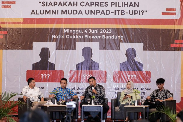 BANDUNG (Suara Karya): Menghadapi pesta demokrasi Pemilihan Presiden (Pilpres) yang akan berlangsung pada 2024 mendatang, Forum Alumni Muda melakukan seminar diskusi tentang ‘Siapakah Capres Pilihan Alumni Muda’ yang di gelar di hotel Golden Flower, Asia Afrika, Bandung, Jawa Barat, Minggu (4/6/2023).