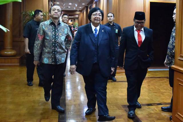 “Saya sudah menjelaskan hal-hal yang prinsip bagaimana fungsi kementerian ini untuk melindungi segenap benda dan tumpah darah Indonesia kepada Pak Wamen. Dari pertemuan sebelum rapim tadi kami menyamakan kesepahaman tentang hal-hal prinsip peran KLHK dan mandat menjaga kedaulatan negara pada konteks sumberdaya alam,” ujar Siti Nurbaya, di kantor Kementerian LHK, Jakarta, Jumat (25/10/2019).
