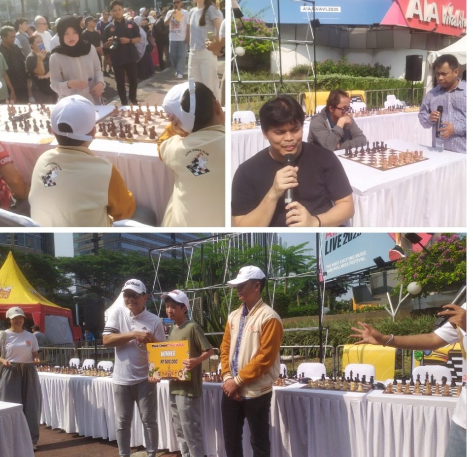 JAKARTA (Suara Karya) : Minggu (5/10/2025) Pagi ceria di kawasan pintu I Senayan, masyarakat Jakarta disuguhkan JAPFA Fun Games Challenge 2025 pertandingan Chess Street Simultan 20 meja melawan Master Internasional Tirta Chandra Purnama serta catur buta menghadapi GM Susanto Megaranto.