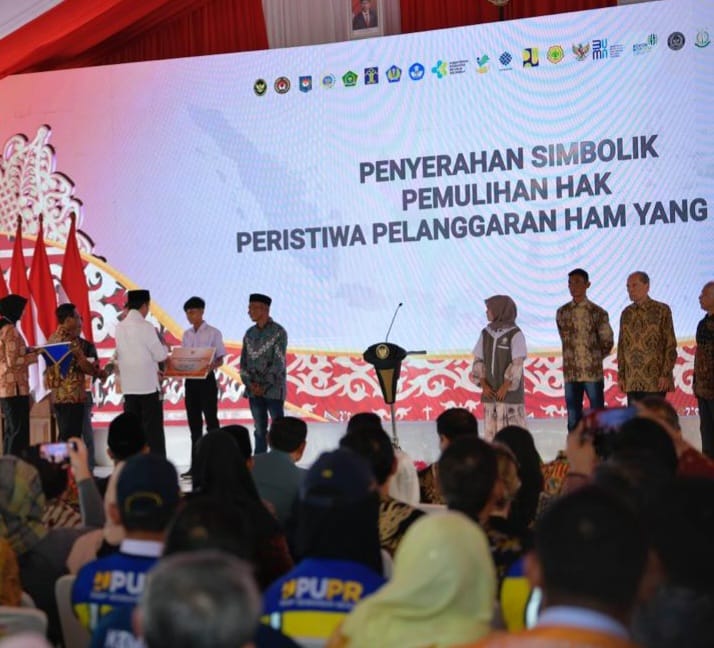 “Hari ini kita bersyukur alhamdulillah, mulai direalisasikan pemulihan hak-hak korban pelanggaran HAM yang berat di 12 peristiwa, sekaligus menandai komitmen bersama untuk pencegahan agar hal serupa tidak terjadi di masa depan,” ucap Presiden.
