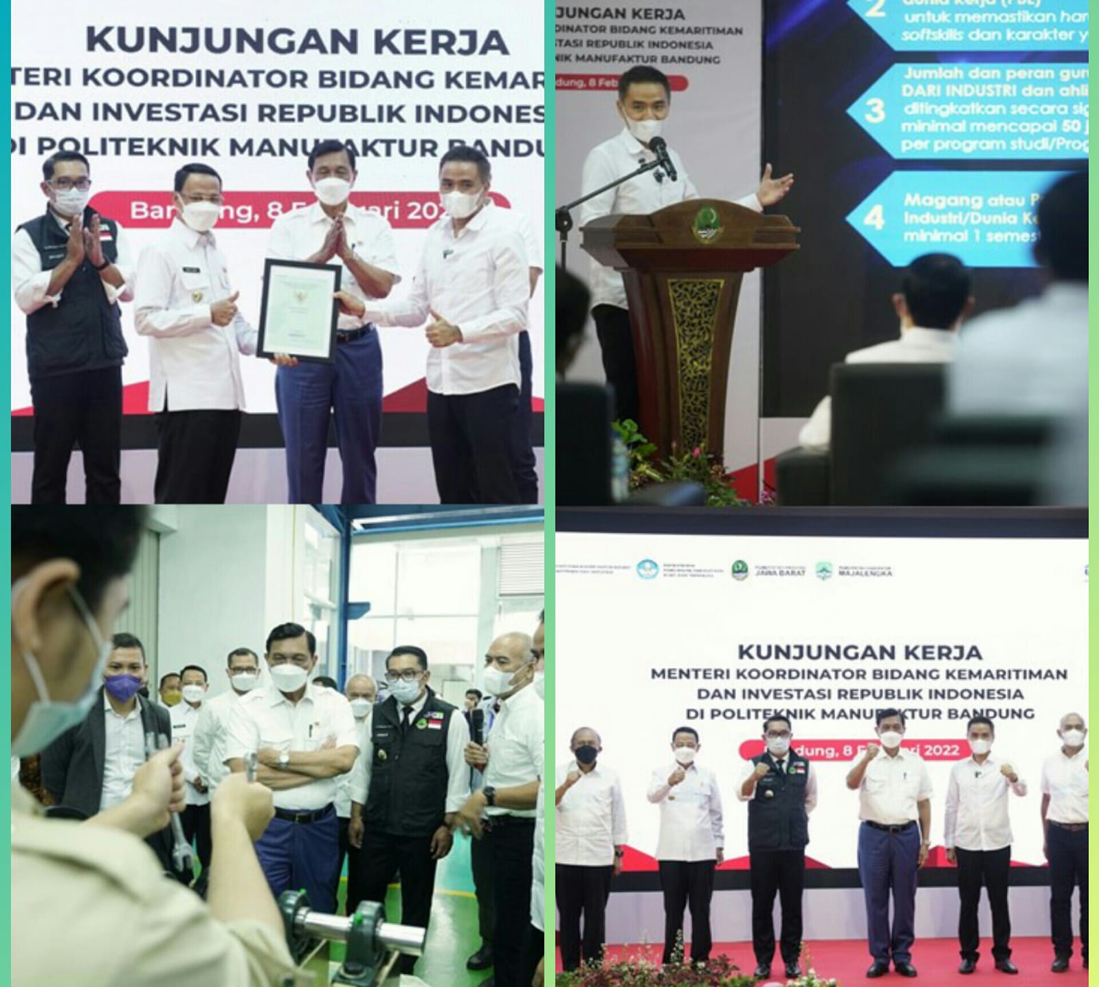 Menko Luhut mengapresiasi upaya Pemkab Majalengka dalam menciptakan SDM unggul guna mendukung kawasan industri. “Pembangunan Kampus 2 Politeknik Manufaktur Bandung di Majalengka menjadi penting, untuk menggerakkan 33 kawasan industri di zona Cirebon- Patimban-Kertajati,” katanya.