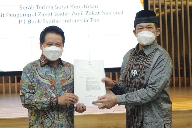 Surat Keputusan tersebut diserahkan langsung oleh Ketua BAZNAS RI Prof. Dr. K.H. Noor Achmad, M.A kepada Direktur Utama Bank Syariah Indonesia Hery Gunardi di Wisma Mandiri, Jakarta, Kamis (20/05/2021).