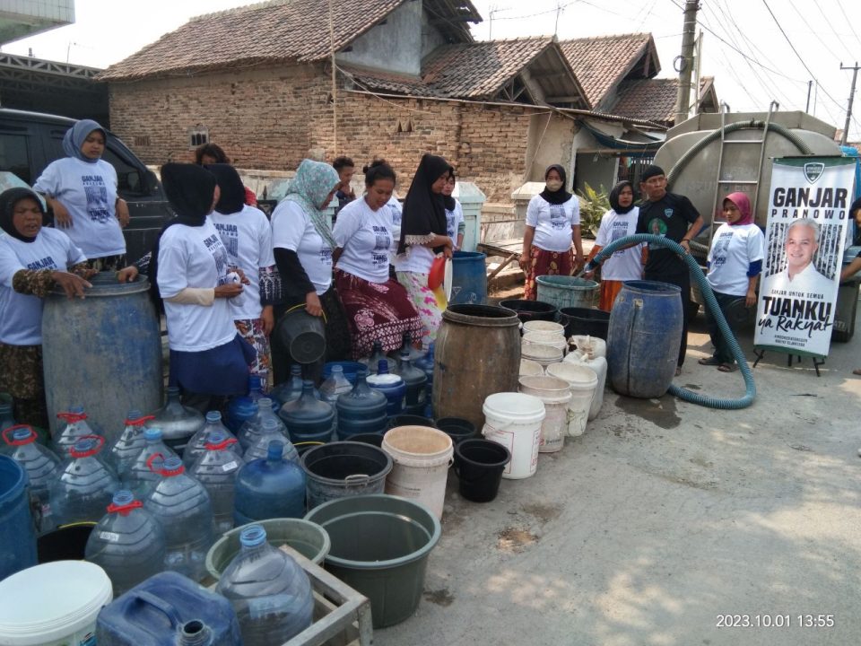 Kehadiran pendukung Ganjar Pranowo itu bersamaan dengan bantuan air bersih yang memang diperlukan warga sekitar.