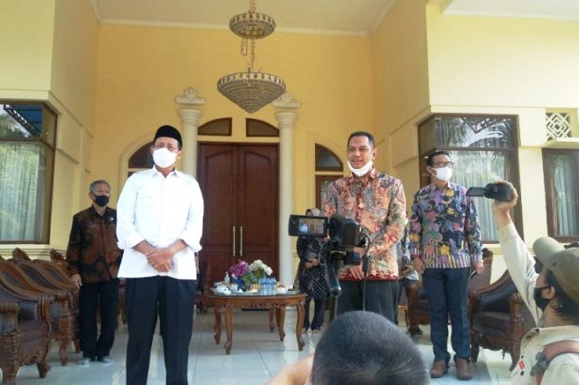 Wakil Ketua Komisi Pemberantasan Korupsi (KPK) Nurul Ghufron (kanan) dan Gubernur Banten Wahidin Halim saat melakukan pertemuan di Kantor Gubernur Banten, Kamis (11/6/2020). (KPK)