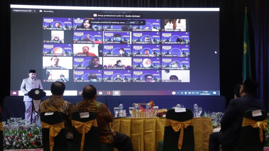 Hal ini disampaikan Menag saat memberikan sambutan pada Dharmasanti Tri Suci Waisak 2565 Tahun Buddhis di Auditorium HM Rasjidi, Kementerian Agama, Jakarta. Hadir, pimpinan Majelis Keagamaan Buddha dan para pejabat negara. Umat Buddha mengikuti agenda ini secara daring melalui aplikasi zoom meeting. Sementara Presiden Joko Widodo memberikan sambutan secara virtual.