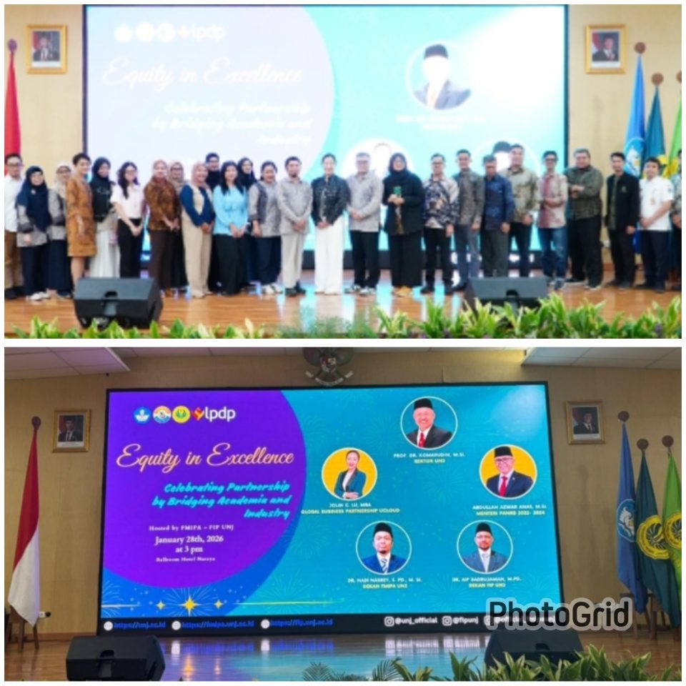 Menjawab tantangan tersebut, dua fakultas di Universitas Negeri Jakarta (UNJ), yaitu Fakultas Matematika dan Ilmu Pengetahuan Alam (FMIPA) serta Fakultas Ilmu Pendidikan (FIP), menginisiasi kolaborasi strategis dengan berbagai mitra industri melalui kegiatan “Equity in Excellence: Celebrating Partnership by Bridging Academia and Industry.” Kegiatan ini merupakan salah satu program kerjasama UNJ dari dana LPDP yang Bernama Equity.