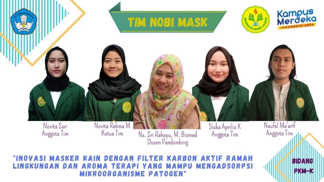 “Melalui inovasi yang dibuat, tim yang diberi nama “Nobi Mask” mahasiswa tersebut mendapat hibah dalam Program Kreativitas Mahasiswa bidang kewirausahaan (PKM-K) yang diselenggarakan Direktorat Jenderal Pendidikan Tinggi melalui Direktorat Pembelajaran dan Kemahasiswaan (Belmawa),”kata Wakil Rektor III Bidang Kemahasiswaan UNJ, Dr. Abdul Sukur, S.Pd., M.Si. di Jakarta, kemarin.