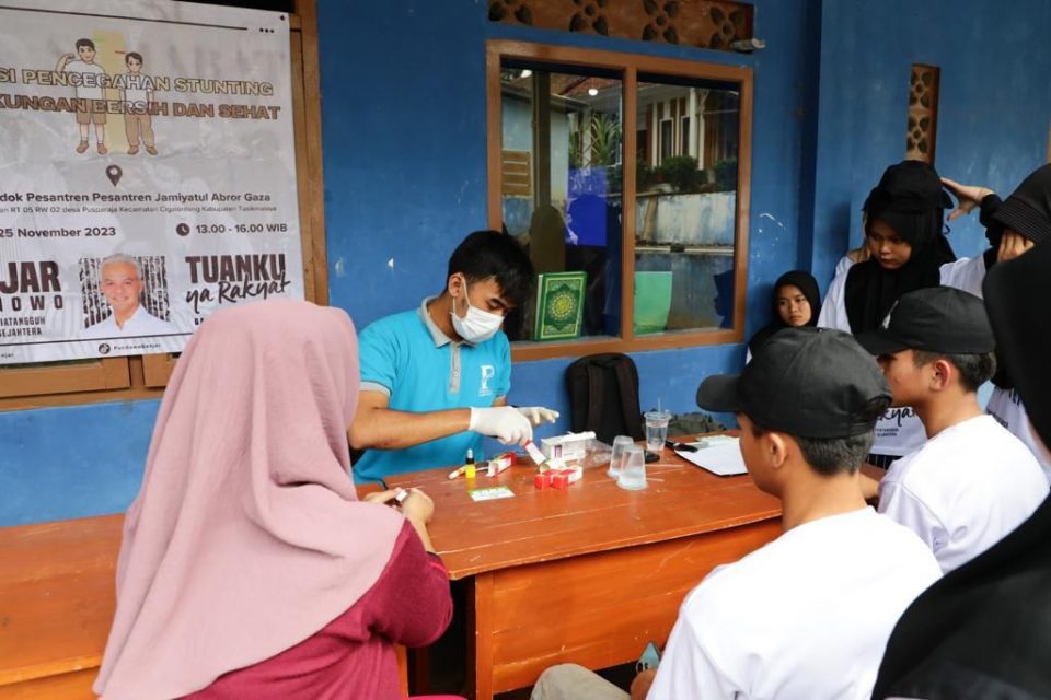 TASIKMALAYA (Suara Karya): Sukarelawan Ganjar Pranowo yang tergabung dalam Pandawa Ganjar melakukan edukasi pencegahan stunting dan lingkungan bersih sehat kepada para santri hingga masyarakat, di Aula Pondok Pesantren Jamiyatul Abror Gaza, Kampung Babakan, Kecamatan Cigalontang, Kabupaten Tasikmalaya, Jawa Barat (Jabar).