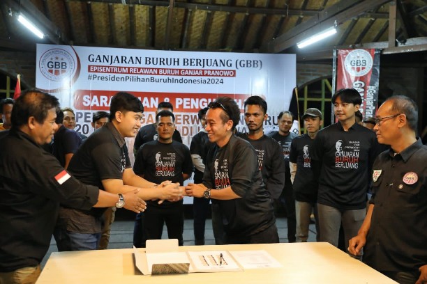 KARAWANG (Suara Karya): Sukarelawan Ganjaran Buruh Berjuang (GBB) telah bertemu bakal calon presiden (bacapres) 2024 Ganjar Pranowo di Kantor Penghubung Provinsi Jawa Tengah (Jateng), Jakarta, pada Sabtu (29/7/2023).