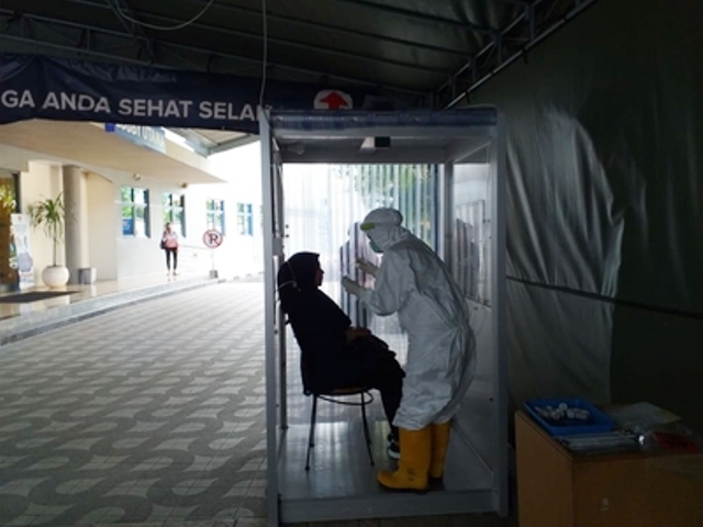 Suasana swab ketiga pegawai RRI Surabaya. (Foto: RRI Surabaya)