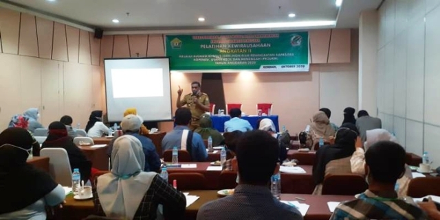 Pelatihan Kewirausahaan dalam rangka peningkatan kapasitas koperasi, usaha kecil dan menengah Tahun Anggaran 2020, digelar selama lima hari dengan jumlah peserta sebanyak 280 orang, terbagi atas tujuh angkatan dengan masing-masing angkatan sejumlah 40 orang. (M Chandra)