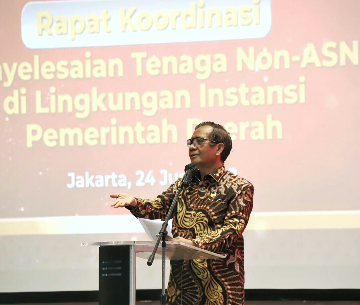 Untuk itu, Mahfud menilai, instansi pemerintah pusat dan daerah diminta melakukan pemetaan terkait pegawai non-ASN yang bisa diikutsertakan dalam seleksi PNS maupun PPPK sesuai ketentuan perundang-undangan.