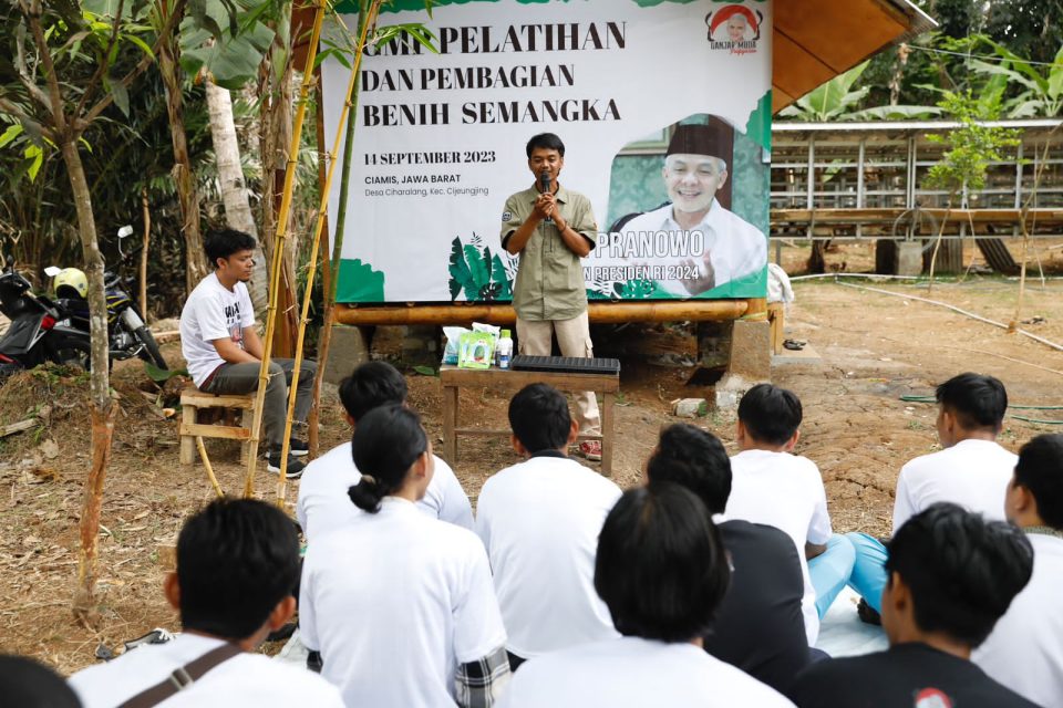 CIAMIS (Suara Karya): Ganjar Muda Padjajaran bersinergi dengan pemuda di Kabupaten Ciamis untuk mengadakan kegiatan Pelatihan dan Pemberian Bibit Semangka di Desa Ciharalang, Kecamatan Cijeungjing, Kabupaten Ciamis, Jawa Barat, Kamis (14/9/2023).