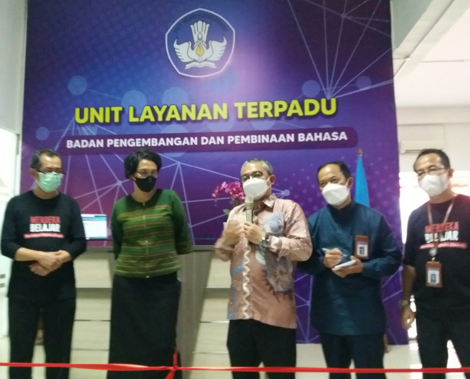 Endang Aminudin Aziz usai peresmian Gedung Baru di Kompleks Badan Bahasa, Jakarta, Selasa (22/2/22).