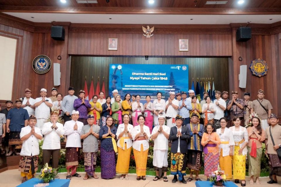 JAKARTA (Suara Karya): Menteri Pariwisata dan Ekonomi Kreatif/Kepala Badan Pariwisata dan Ekonomi Kreatif (Kemenparerkaf/Baparekraf) Sandiaga Salahuddin Uno mengapresiasi perayaan Dharma Santi Hari Suci Nyepi Tahun Caka 1945 di Gedung Widyatula, Kampus Politeknik Pariwisata (Poltekpar) Bali sebagai momentum memperkuat hubungan harmonis dengan alam dan lingkungan sekitar.