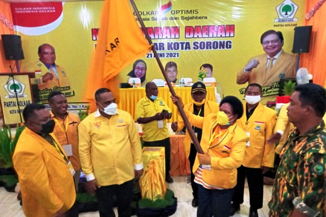 SORONG (Suara Karya): Politisi perempuan Papua yang juga ketua DPRD kota Sorong, Petronela Kambuaya resmi menjabat ketua DPD Golkar setelah terpilih secara aklamasi dalam Musyawarah Daerah Partai Golkar Kota Sorong, Senin (21/6/2021).