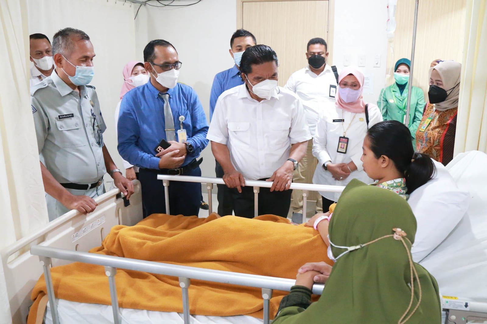 Pj Gubernur Al Muktabar Jenguk 9 Korban Kecelakaan Odong-Odong Tertabrak Kereta Api Yang Masih Dirawat