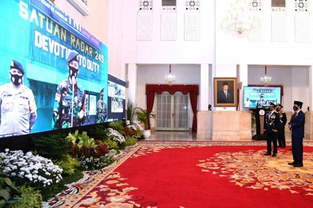 “Terima kasih ini juga salah satu kekuatan kita dalam mendeteksi karena ini radar udara dan dipasang di Indonesia Timur bagian paling selatan kepulauan Tanimbar, pertahanan kita di udara akan sangat baik bila dapat terus memantau perbatasan udara kita. Jalankan tugas dengan baik. Sehat semua,” ucap Presiden.