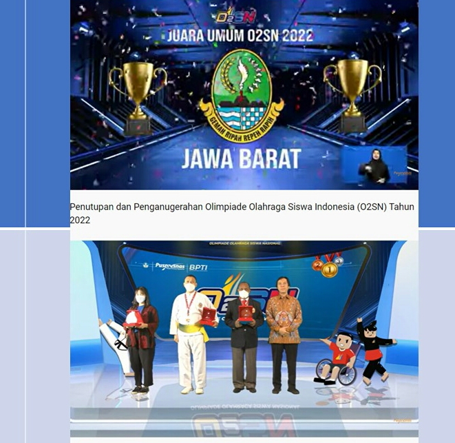 JAKARTA (Suara Karya): Provinsi Jawa Barat (Jabar) berhasil meraih juara umum dalam kompetisi Olimpiade Olahraga Siswa Nasional (O2SN) 2022 Tingkat Nasional. Dalam acara digelar secara hybrid dari Bogor itu, Jabar mendapat 9 medali emas, 5 medali perak, dan 5 medali perunggu.