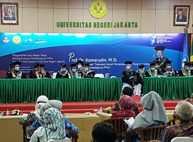 JAKARTA (Suara Karya): Rektor Universitas Negeri Jakarta (UNJ) Prof Dr Komarudin, M.Si akhirnya dikukuhkan sebagai Guru Besar Tetap UNJ Bidang Ilmu Evaluasi Pembelajaran Pendidikan Pancasila dan Kewarganegaraan (P2K). Pasalnya, gelar profesor itu sudah diperolehnya sejak 1 September 2020.