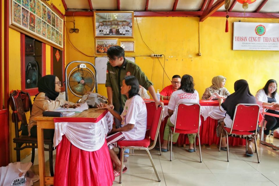 TANGERANG (Suara Karya): Relawan Ganjar Untuk Semua bekerja sama dengan Yayasan Ceng It Thian Kun Bio, Generasi Muda Tao Indonesia (GMTI) dan Rumah Sakit Melati mengadakan kegiatan Bakti Sosial bagi puluhan warga tidak mampu di Yayasan Ceng It Thian Kun Bio, Kecamatan Cipondoh, Kota Tangerang, Banten, Rabu (30/8/2023).