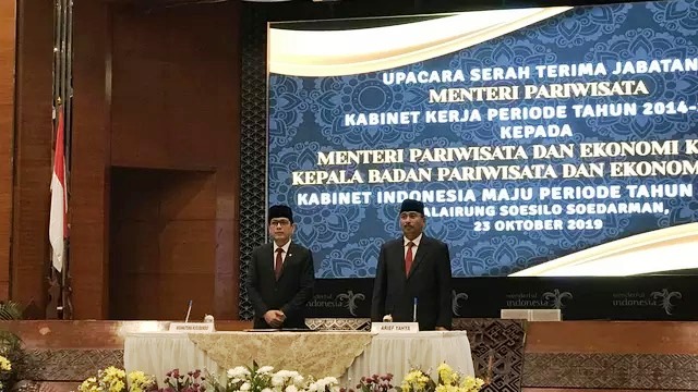 JAKARTA (Suara Karya): Wishnutama Kusbandio resmi dilantik sebagai Menteri Pariwisata dan Ekonomi Kreatif Kabinet Indonesia Maju Periode 2019-2024 menggantikan Arief Yahya. Dia mengatakan berupaya memenuhi keinginan Presiden Jokowi yang secara khusus telah meminta dirinya untuk meningkatkan devisa dari sektor pariwisata. Selain itu, dirinya akan melanjutkan program kerja pendahulunya, Arief Yahya.