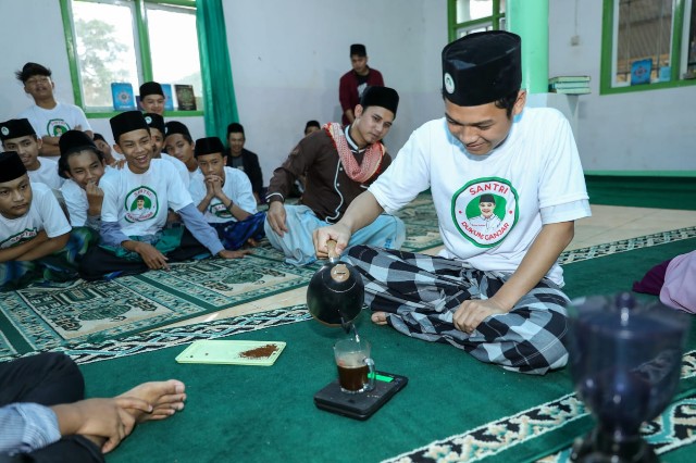 Kali ini, sukarelawan pendukung Ganjar Pranowo tersebut menggelar pelatihan mengolah kopi bagi para santri dan warga di Pondok Pesantren (Ponpes) Miftahul Huda Assaroji, Kampung Pereng, Desa Cikawo, Kabupaten Pacet, Kabupaten Bandung, Jawa Barat, pada Rabu (5/4/2023).