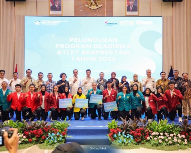 JAKARTA (Suara Karya): Pusat Pembiayaan dan Asesmen Pendidikan Tinggi (PPAPT), Kementerian Pendidikan Tinggi, Sains dan Teknologi (Kemdiktisaintek) bersama Kantor Staf Presiden (KSP) dan Kementerian Pemuda dan Olahraga (Kemenpora) resmi meluncurkan Beasiswa Atlet Berprestasi Tahun 2025, di Jakarta, Rabu (22/10/25).