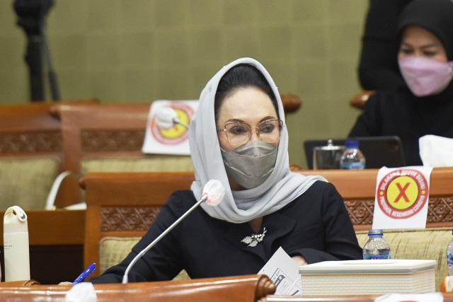 Anggota Komisi IX DPR RI Dewi Asmara saat mengikuti Raker, RDP dan RDPU Komisi IX di Gedung Nusantara I, Senayan, Jakarta, Senin (15/3/2021). (dpr.go.id)