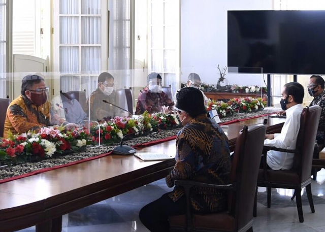 Hadir dalam pertemuan tersebut, Menteri Sekretaris Negara, Pratikno.