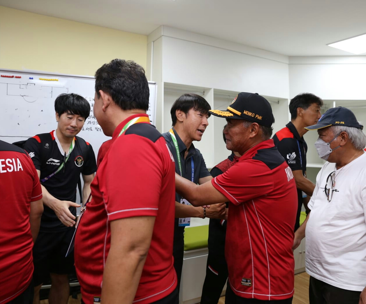 Usai laga, Menko PMK menemui para punggawa Garuda Muda di ruang ganti untuk memberi ucapan selamat. Ia juga menyalami masing-masing pemain serta pelatih Shin Tae-Yong dan jajaran ofisial. Performa Timnas Indonesia dinilai sudah memuaskan.