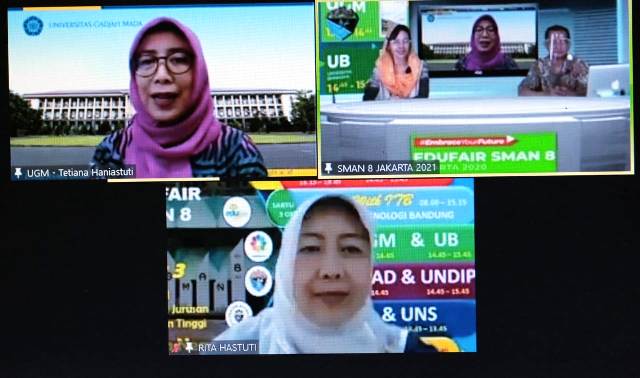 Dari UGM, selain Tetiana Haniastuti, ,Ph.D selaku Wakil Dekan Bidang Akademik dan Kemahasiswaan Fakultas Kedokteran Gigi UGM dan juga hadir Prita dari bagian Kemahasiswaan UGM. Prita menjelaskan selain program regular di UGM, banyak pula program Kelas International dari UGM yang pendaftarannya biasanya dimulai di akhir semester ganjil.